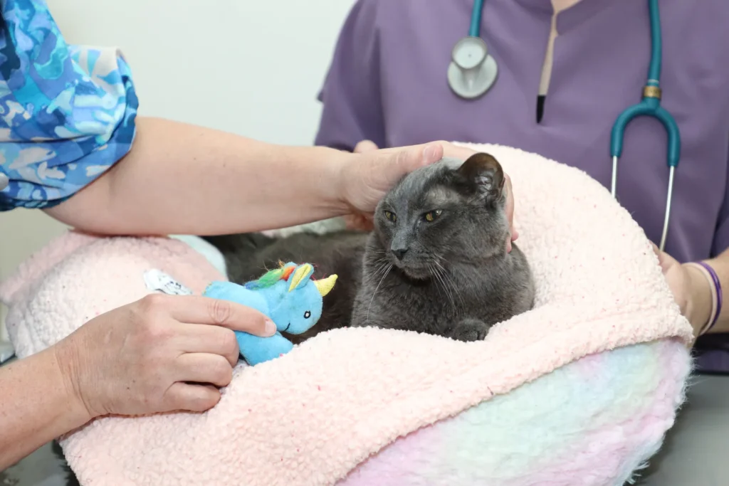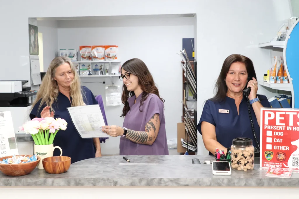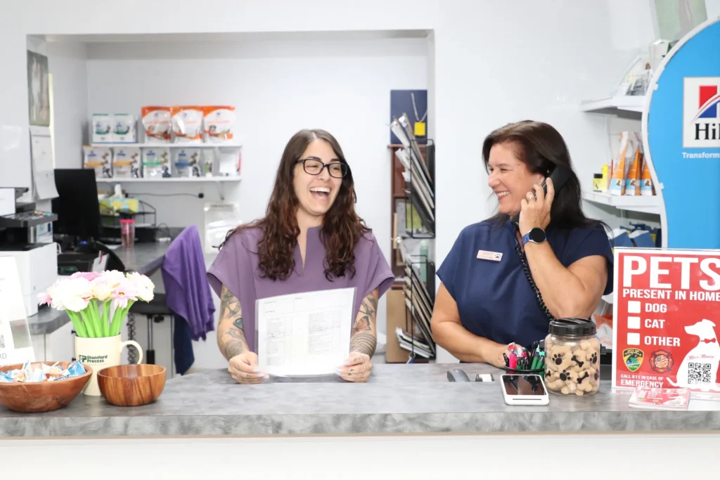 Your visit with us begins with you being greeted by our client care team. All of our team members are Fear Free™ Certified. Your cat or dog companion will be greeted with gentle handling, calming techniques, and plenty of kindness to help them immediately feel safe and at ease.